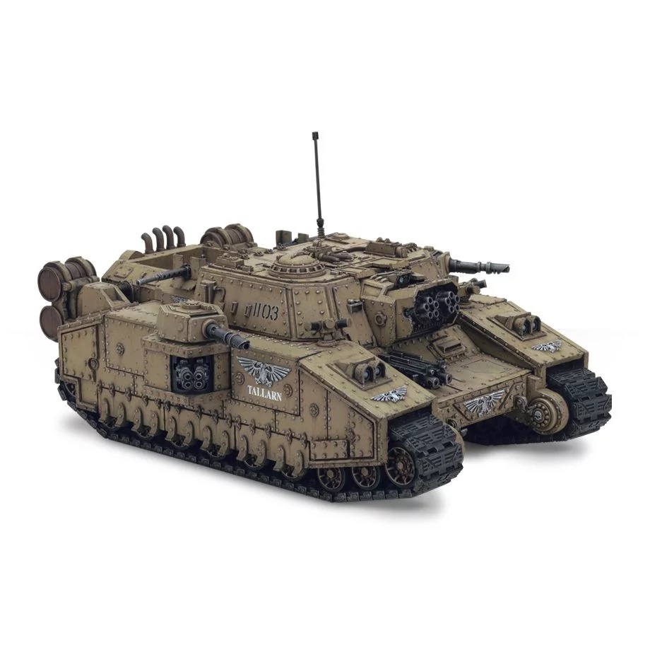 Ένα μόνο υπερ-βαρύ άρμα είναι μια κυρίαρχη παρουσία σε μια γραμμή μάχης Astra Militarum. Καθώς οργώνει αδυσώπητα προς τα εμπρός, χαράζει ένα ευρύ μονοπάτι καταστροφής. Οι τάξεις του εχθρού θρυμματίζονται πολύ πριν φτάσει στη θέση τους και εκείνοι οι λίγοι άτυχοι που είναι σε θέση να διατηρήσουν τους αμυντικούς σχηματισμούς τους αλέθονται για να κολλήσουν κάτω από τις πλάκες που μοιάζουν με πλάκες στα ίχνη του. Το Baneblade είναι η πιο κοινή παραλλαγή υπερ-βαρέων δεξαμενών. Το κύριο όπλο του - το τρομακτικό κανόνι με λεπίδα - είναι ικανό να εκτελεί αποκαλυπτικούς βομβαρδισμούς σε τρομακτικό βεληνεκές.