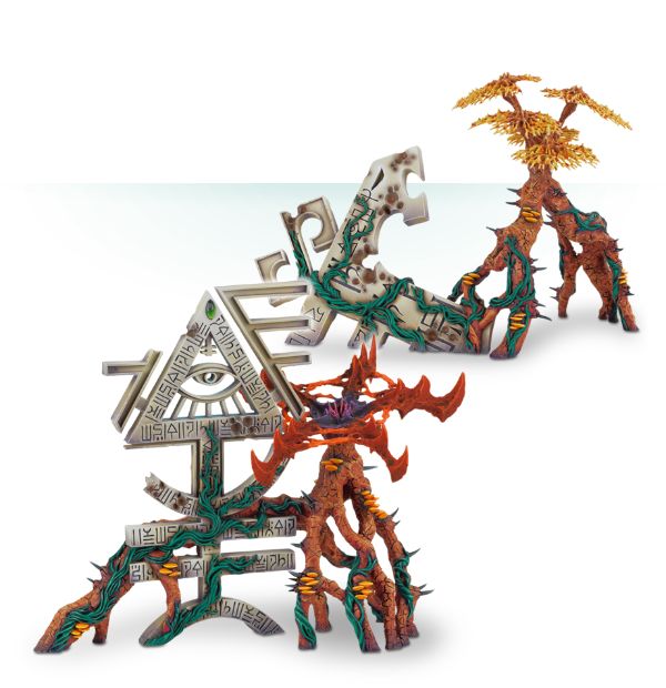 Αυτό το πλαστικό κιτ πολλαπλών εξαρτημάτων περιέχει τα απαραίτητα εξαρτήματα για τη συναρμολόγηση 2 κομματιών Eldritch Ruins, κατάφυτων και θανατηφόρων σκηνικών αντιπροσωπευτικών τρομακτικών κόσμων του θανάτου. Καλυμμένα με σύμβολα και συνυφασμένη με την κακόβουλη χλωρίδα του κόσμου του θανάτου, θα δώσουν στο τραπέζι σας μια εξαιρετικά απόκρυφη εμφάνιση – και θα προσθέσουν στα παιχνίδια σας, καθώς είναι πλήρης με κανόνες για χρήση στα παιχνίδια του Warhammer 40.000.