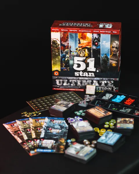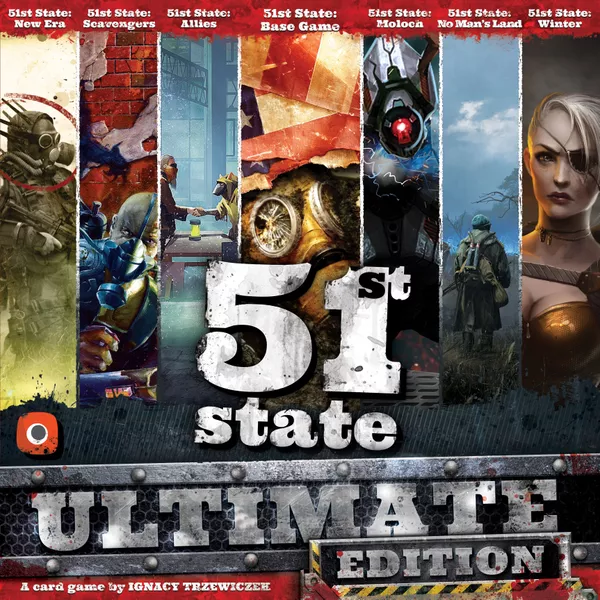 51st State: Ultimate Edition is the all-in-one package for 51st State, including the base game as well as six expansions: New Era, Winter, Scavengers, Allies, Moloch, and No Man's Land plus six promo add-ons that add additional cards and components.