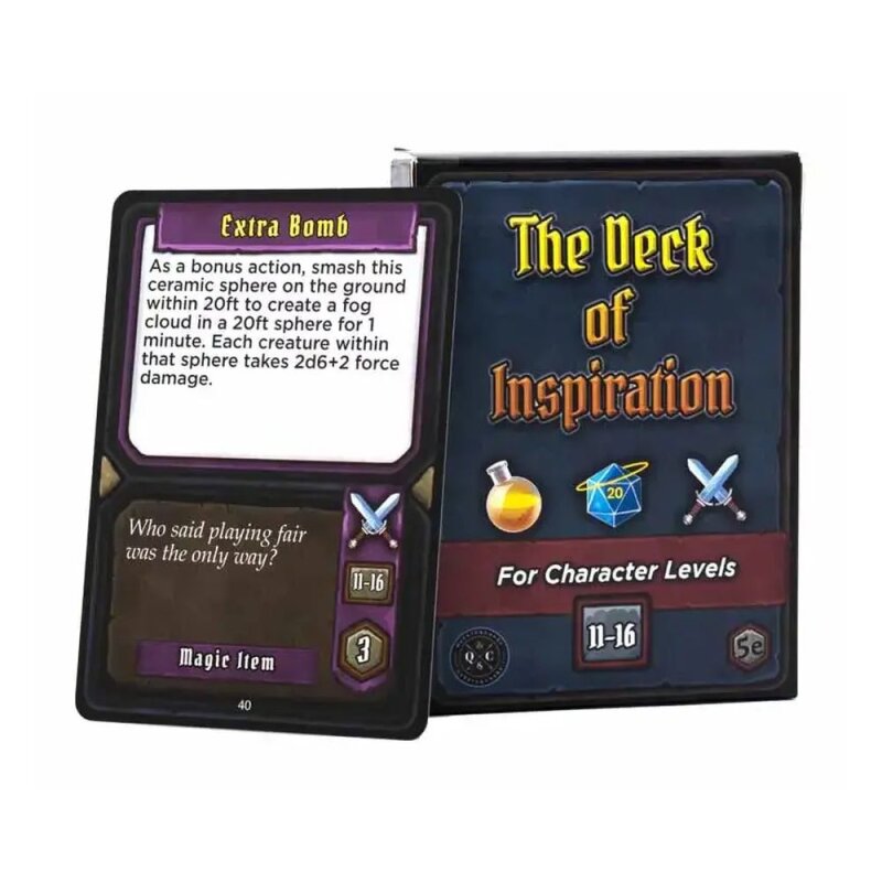 The Deck of Inspiration enhances the Inspiration mechanic for Dungeons & Dragons 5e. As the DM, you can reward great player behavior with unique, one-time-use boons.