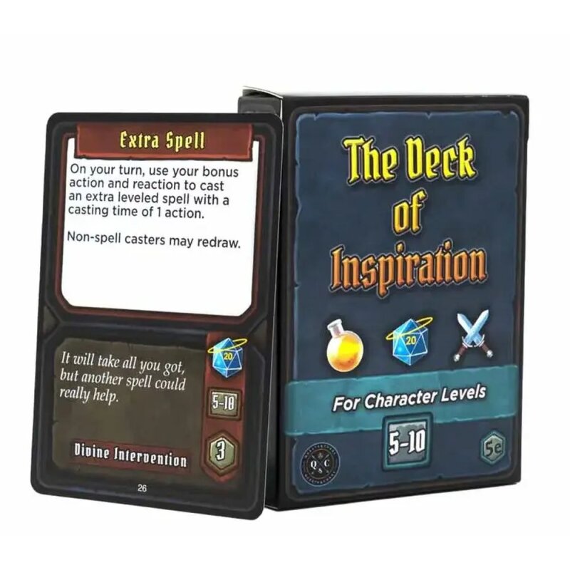 The Deck of Inspiration enhances the Inspiration mechanic for Dungeons & Dragons 5e. As the DM, you can reward great player behavior with unique, one-time-use boons.