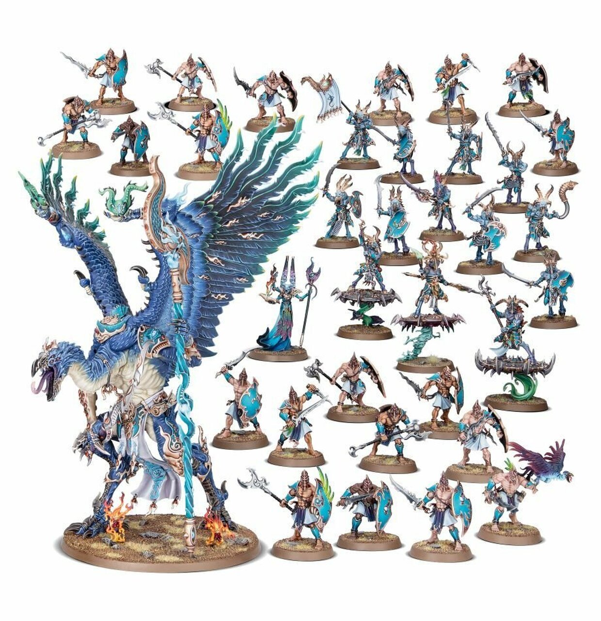Tzeentch’s might is yours to master with the Fatesworn Host – a massive battleforce set that’s perfect for starting or expanding a Tzeentch army. Inside, you’ll find the makings of a vast force, giving you a fantastic point to expand out from, all for less than you’d pay getting the models separately. Lead your forces with a Lord of Change and Gaunt Summoner while shattering enemies with formations of Kairic Acolytes and Tzaangors.