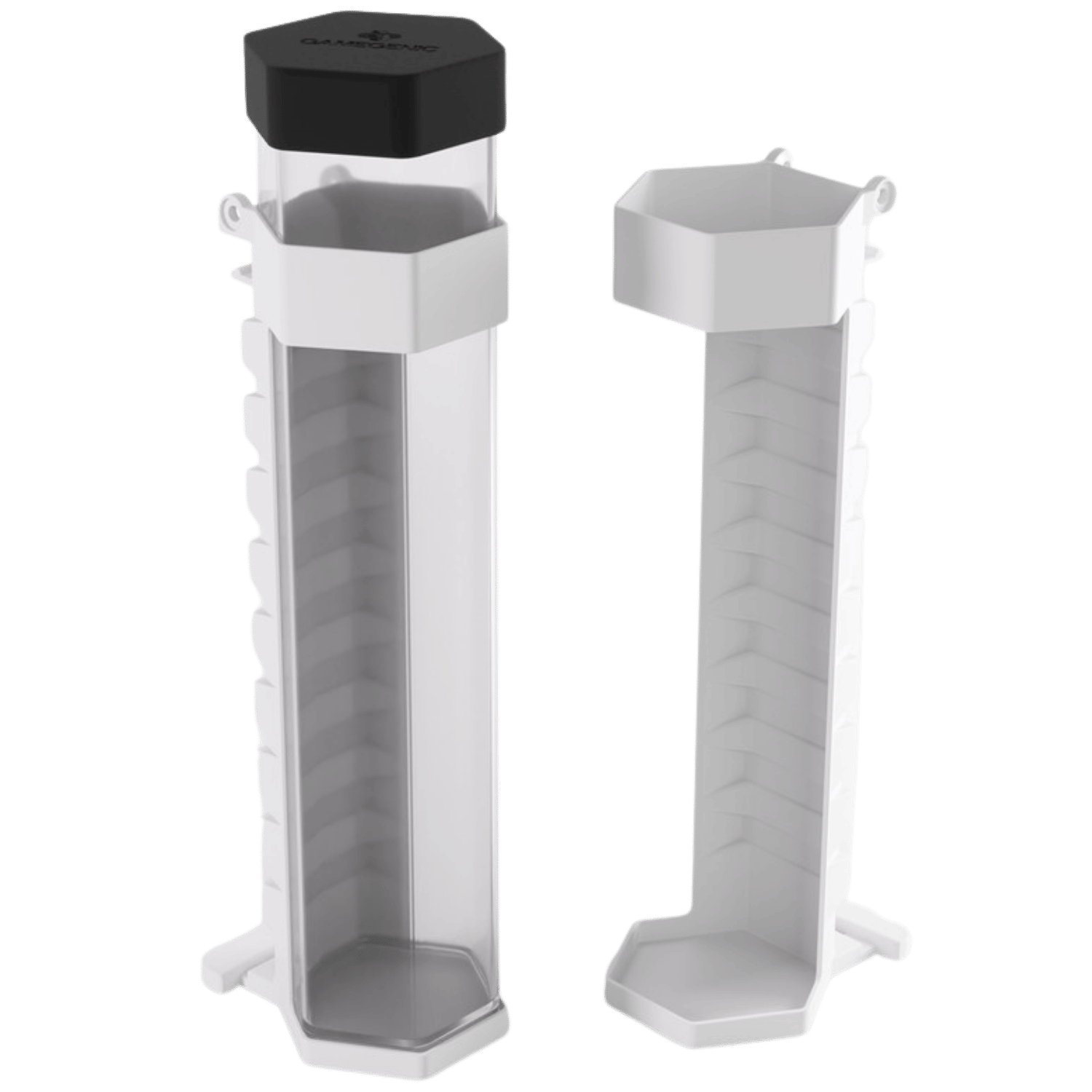The Gamegenic Game Castle Tube Holder – White is a handy add-on for your Game Castle: it attaches to either side of the case and can be removed just as easily. This lets you carry your playmat right on the Game Castle, keeping your hands free on the way to game nights or tournaments.