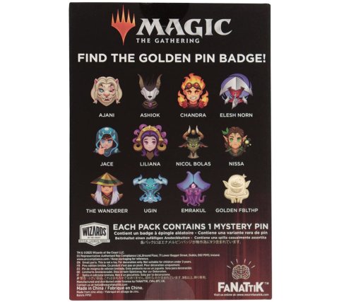 Each individual mystery pin is crafted from high-quality metal and finished with a luxurious hard-enamel front and a black nickel-colored back. Each blind pack contains one pin featuring an iconic, legendary character like Chandra, Elesh Norn, or Ugin. With a little luck, you might even pull off the special gold-colored embossed Fblthp pin. Its compact yet striking size makes it ideal for wearing on a jacket, bag, or lanyard, or for adding to your collection.