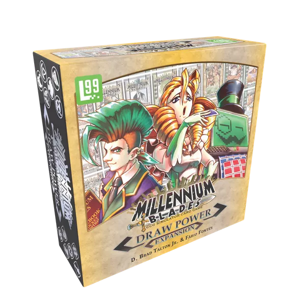 Millennium Blades: Draw Power is an expansion for Millennium Blades that includes the main gameplay components from the Collusion expansion. This gives you access to Team Mode, NPC's, updated rules, new characters, and, of course, more cards!