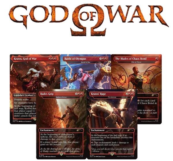Santa Monica Studio teamed up with Wizards of the Coast to create two Secret Lair packs that trace Kratos’s journey—from unstoppable fury to a father shaped by love and legacy. The first Secret Lair pack (Greek) explores Kratos from the original trilogy as an embodiment of raw chaos.