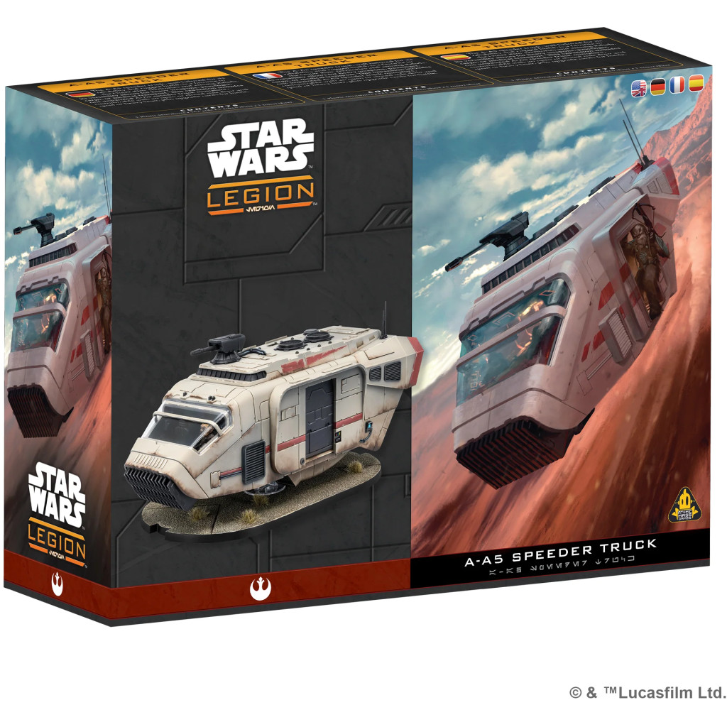 The A-A5 Speeder Truck provides Star WarsTM: Legion players with a robust and versatile heavy transport. Rebel players will find that this vehicle greatly improves the mobility of their troops across the battlefield while also being able to provide covering fire with its mounted weapons. Additionally, its strong armor plating can provide cover for rebel troops during intense blaster fights.