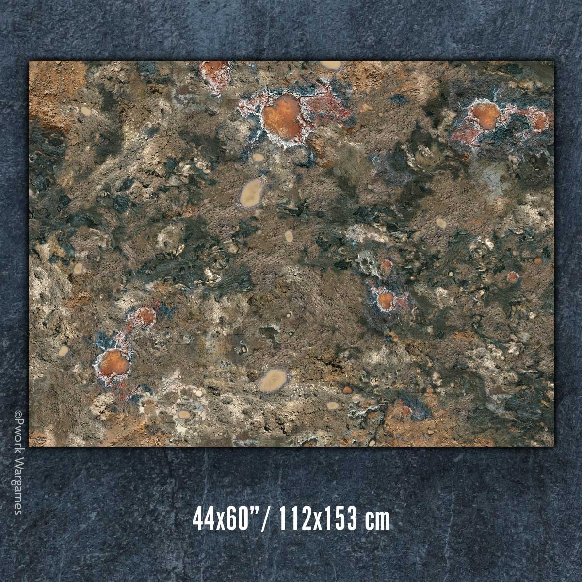 Heavily inspired by the Grimdark atmosphere of Trench Crusade, this game mat brings the brutality of a ruined world to your gaming table. Explore ravaged battlefields, stage clashes between the forces of light and darkness, and immerse yourself in a post-apocalyptic setting dominated by muddy trenches, barbed wire, craters, and macabre remains. Every detail tells the story of an eternal war.