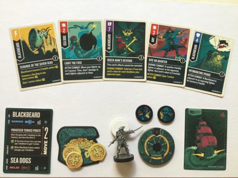 Unmatched is a highly asymmetrical miniature fighting game for two or four players. Each hero is represented by a unique deck designed to evoke their style and legend. Tactical movement and no-luck combat resolution create a unique play experience that rewards expertise, but just when you've mastered one set, new heroes arrive to provide all new match-ups.