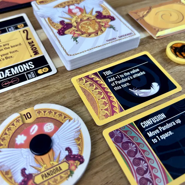 Battle of Legends, Volume Three features four disparate heroes: the pirate Blackbeard, the beastly Chupacabra, the trickster Loki, and the cursed and gifted Pandora. (Blackbeard, Chupacabra, and Loki are all runners-up from a deck-design contest.)