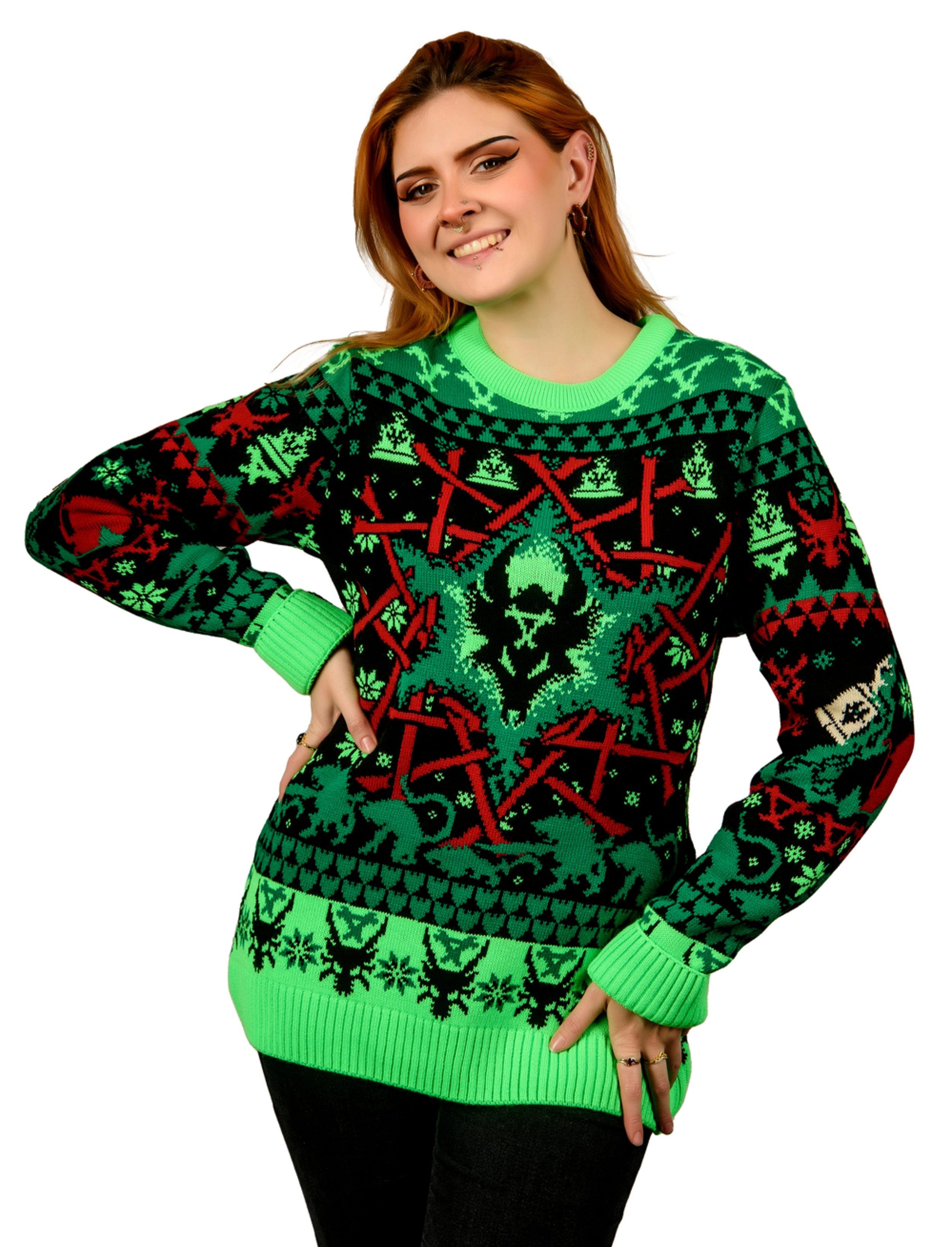 Embrace the verminous spirit with the Warhammer 40,000: Skaven Christmas Jumper. This officially licensed sweater features the iconic Great Horned Rat logo, surrounded by sinister Skaven symbols and patterns. Perfect for Warhammer fans who want to show their allegiance to the Under-Empire.