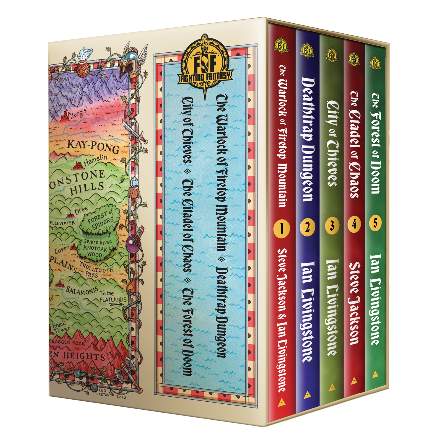 Αυτή η πρώτη σειρά περιλαμβάνει πέντε βιβλία: Ο Μάγος του Βουνού της Φωτιάς , Μπουντρούμι Θανάσιμης Παγίδας , Πόλη των Κλεφτών , Η Ακρόπολη του Χάους , και Το Δάσος της Καταστροφής , καθώς και μια έγχρωμη, ειδικά σχεδιασμένη θήκη.