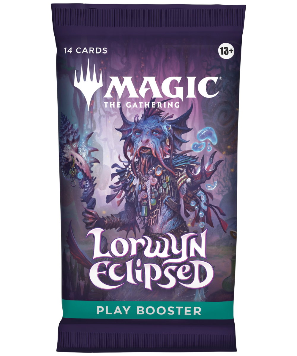 Επιστρέψτε στη γη του φωτός και της σκιάς, αγκαλιάστε τις δυνάμεις της τάξης και του χάους και ανακαλύψτε τον αληθινό σας εαυτό. Τα Lorwyn Eclipsed Play Boosters μπορεί να περιέχουν τις ακόλουθες κάρτες: ECL 1–351, SPG 129–148. Κάθε Play Booster περιλαμβάνει 1–4 κάρτες σπανιότητας Σπάνιες ή υψηλότερες (2: 27%, 3: 2%, 4: <1%), και 3–5 Ασυνήθιστες, 6–9 Κοινές και 1 κάρτα Γης. 1 κάρτα οποιασδήποτε σπανιότητας είναι Παραδοσιακό Foil. Το Foil Borderless Mythic είναι Σπάνιο σε <1% των ενισχυτών. Το Παραδοσιακό Foil Land αντικαθιστά μια Γη στο 20% των ενισχυτών.