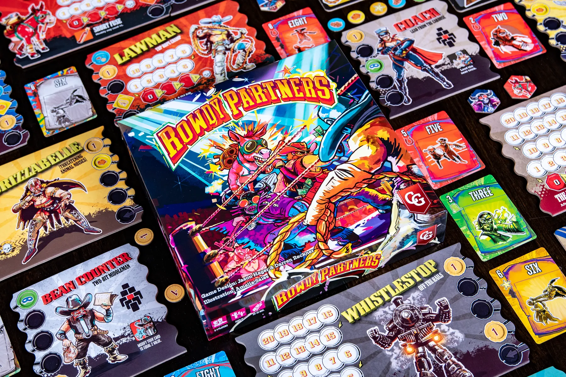 Rowdy Partners είναι ένα ομαδικό παιχνίδι με κόλπα που παίζεται σε μια σειρά γύρων, με κάθε γύρο να αποτελείται από οκτώ κόλπα. Συνεργαστείτε με τον συμπαίκτη σας για να νικήσετε τους άλλους παίκτες, εξαντλώντας την υγεία τους μέσω υπολογισμένων χτυπημάτων και ύπουλων αντεπιθέσεων. Αλλάξτε παλαιστές στη μέση του αγώνα, εξαπολύστε χαρακτηριστικές κινήσεις και συλλέξτε Pop για να αποκτήσετε το πάνω χέρι. Η ομάδα που θα καρφώσει πρώτη έναν από τους αντιπάλους της κερδίζει!