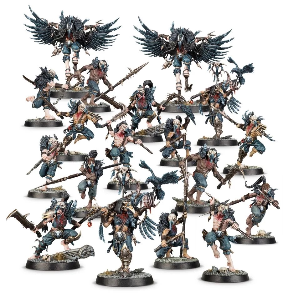 Αυτό το πλαστικό κιτ πολλαπλών μερών δημιουργεί μια ζώνη μάχης του Corvus Cabal – κρυφά οδοκαθαριστές που μπορούν να τοποθετηθούν σε στρατούς Slaves to Darkness στο Warhammer Age of Sigmar ή να χρησιμοποιηθούν ως πλήρης ιμάντας στα παιχνίδια Warcry. Καθοδηγούμενοι από ένα Shrike Talon με φτερωτά δάχτυλα, αυτοί οι σκιεροί όργανοι είναι ντυμένοι με φτερά, κουρέλια και κρανία πουλιών και μπορούν να οπλιστούν με μια ποικιλία από δρεπάνια, δόρατα και μαχαίρια για να παρενοχλήσουν και να διασπάσουν οποιονδήποτε μεταξύ τους και τους θησαυρούς.
