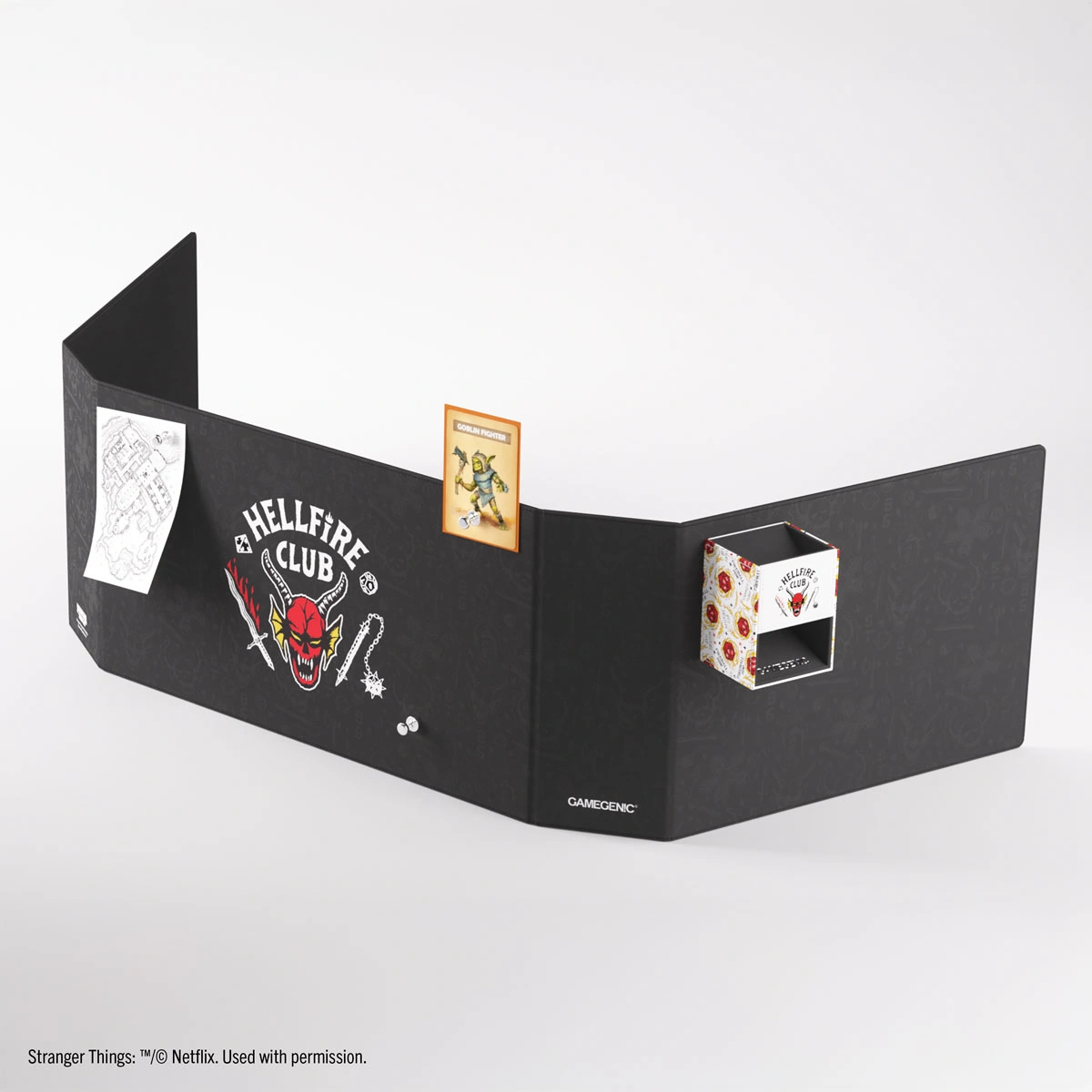 Αυτή η υψηλής ποιότητας, μαγνητική οθόνη Hellfire Club Master Screen είναι ένα απαραίτητο αξεσουάρ για κάθε λάτρη της σειράς Stranger Things ™ . Με τον εμβληματικό της σχεδιασμό, φέρνει την ατμόσφαιρα μιας από τις πιο δημοφιλείς σειρές του Netflix κατευθείαν στο τραπέζι του παιχνιδιού! Ο gamemaster μπορεί εύκολα να κρυφοκοιτάξει και να φτάσει στην κεντρική οθόνη, ενώ κρύβει τις ζαριές και τις σημειώσεις από τους παίκτες γύρω από το τραπέζι. Λόγω του ισχυρού μαγνητισμού της μέσα και έξω, μπορεί να κρατήσει εύκολα τις πιο σημαντικές και συχνά χρησιμοποιούμενες πληροφορίες στο παιχνίδι, εξοικονομώντας παράλληλα πολύτιμο χώρο στο τραπέζι. Η κεντρική οθόνη Hellfire Club Master Screen είναι το τέλειο πρόσθετο για κάθε παιχνίδι ρόλων, όπως τα Dungeons & Dragons ™ , Shadowrun ™ ή Pathfinder ™ . Είναι κατασκευασμένη από υλικό υψηλής ποιότητας και διπλώνει σε μέγεθος εύκολο στη μεταφορά (410 mm επί 230 mm).