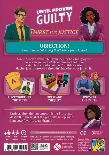 Δίψα για Δικαιοσύνη είναι μια αυτόνομη υπόθεση στην οποία η κλοπή χρημάτων από ένα γνωστό νυχτερινό κέντρο διασκέδασης κρύβει πολλές αβεβαιότητες. Χρησιμοποιώντας τα διαθέσιμα αποδεικτικά στοιχεία στον ρόλο σας ως δικηγόρος Πίτερ Χάουαρντ, πείστε τους ενόρκους με το μέρος σας και πείστε τους για την αθωότητα του πελάτη σας.